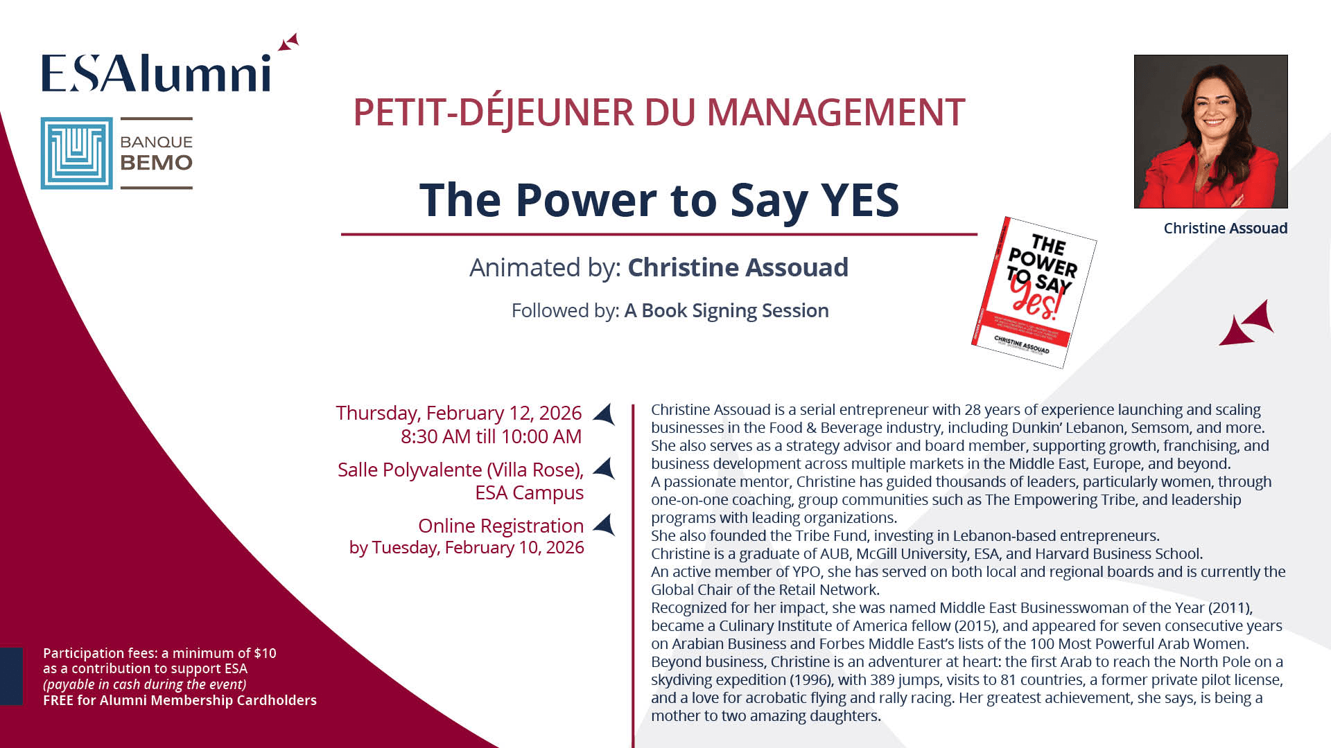 As part of les PETITS-DÉJEUNERS DU MANAGEMENT, organized by ESA Business School in partnership with Banque Bemo