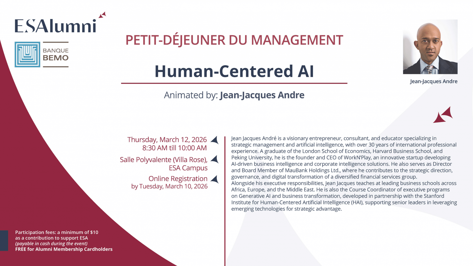 Dans le cadre des PETITS-DÉJEUNERS DU MANAGEMENT organisés par l'ESA Business School en partenariat avec la Banque Bemo